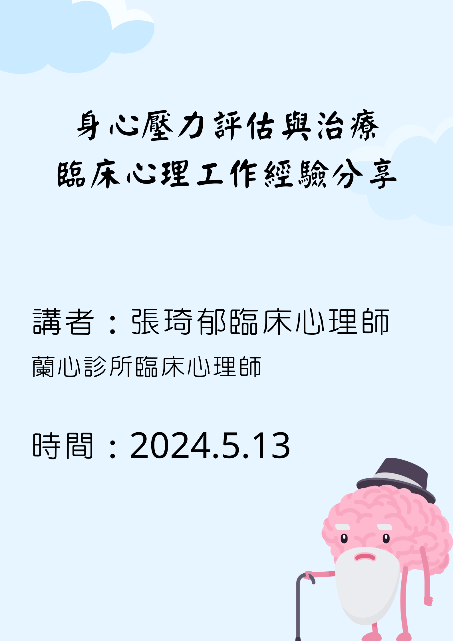 「身心壓力評估與治療臨床心理工作經驗分享」