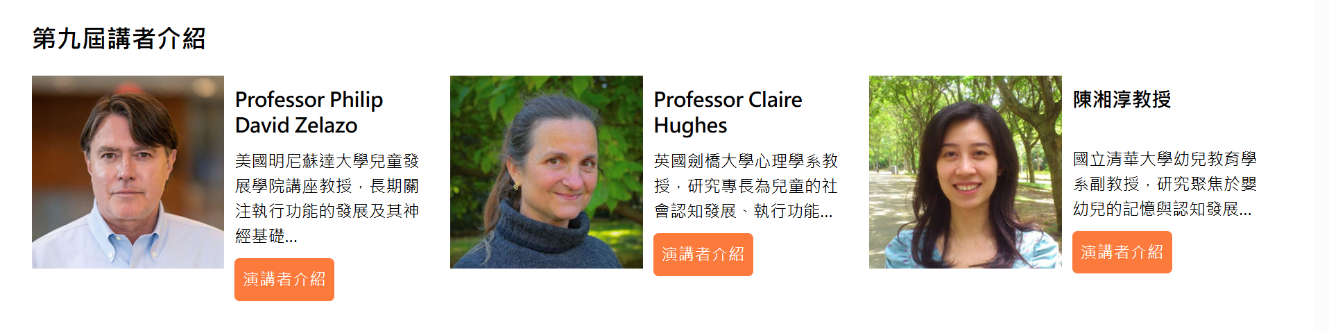 本屆研討會邀請到幼兒執行功能研究的國際權威學者,分享影響執行功能發展的關鍵因素、縱貫性追蹤及跨文化比較等最新研究成果,歡迎相關領域學者、實務工作者與家長共同參與,攜手關心兒童的未來。