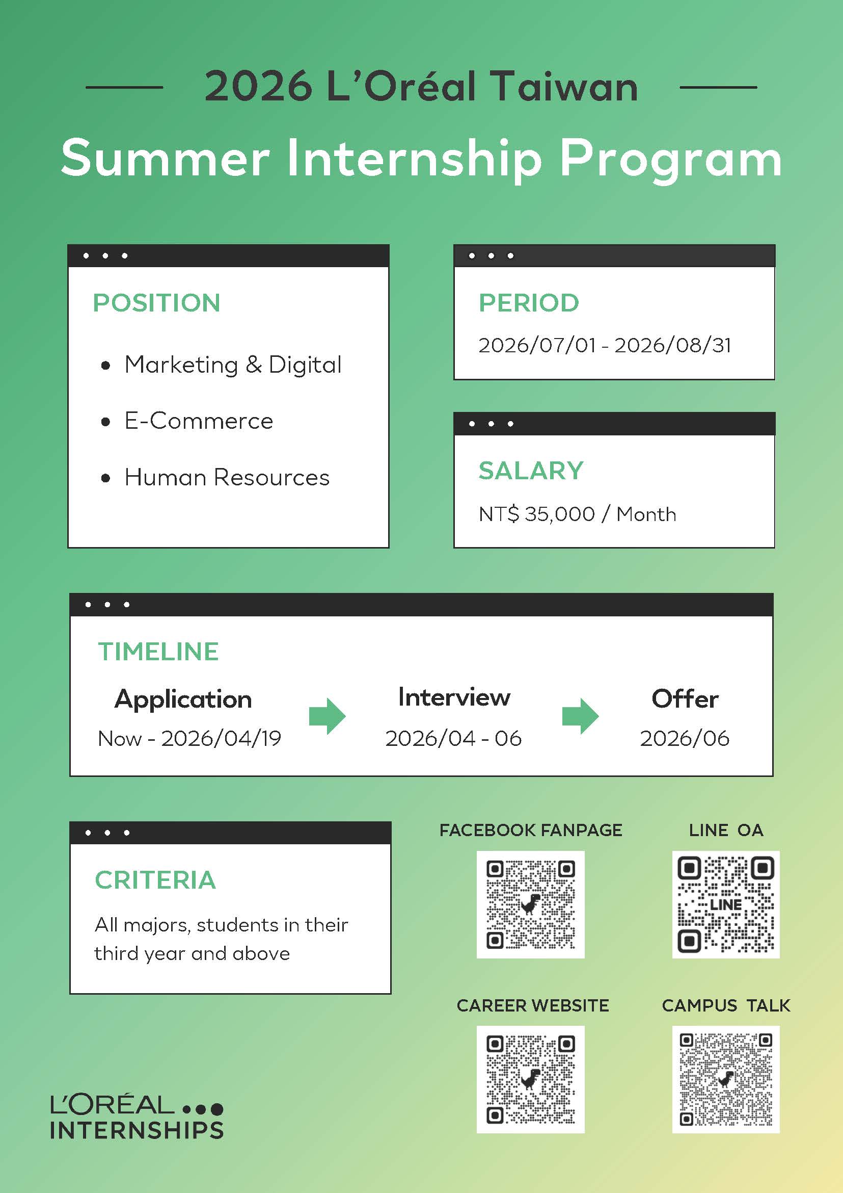 2026/03/19 17:31 [產業實習]2026 台灣萊雅暑期實習計畫