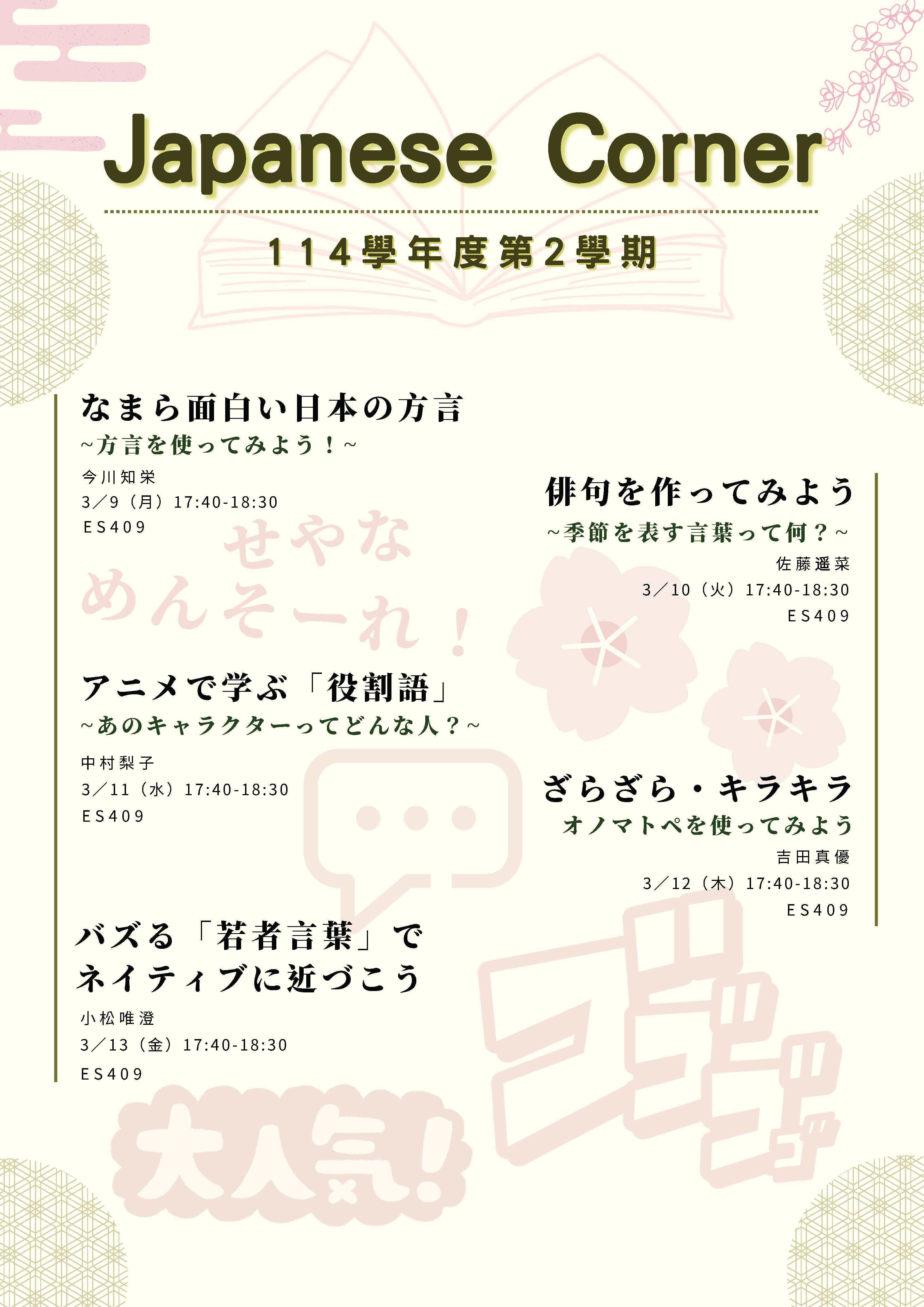 參加者須準時出席並完成簽到,始能登錄於日文系課外活動學習護照(填寫後統一於3/16至系辦蓋章)