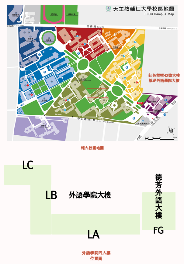 *輔大校園地圖及德芳外語大樓位置請見圖檔。